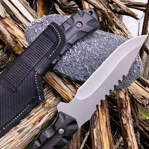 This rugged outdoor survival knife from Zenith Trek™ is built for reliability in the wild — whether you’re camping, hiking, or on a tactical mission. The durable 5Cr13Mov stainless-steel blade delivers sharp performance and corrosion resistance, while the aluminum handle provides a secure, comfortable grip even in wet conditions.